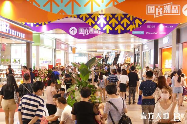壹方天地B區開業慶典於7月28日上午正式開始。當天,來自社會各界的嘉賓和B區的消費者共同見證了這一盛事。開業慶典現場採用B區開業的主色調——黃色,更將 「潮」的特點充分融入其中,將現場變成了一個巨大的遊樂場。伴隨着重量級嘉賓的剪綵,無數潮流「因子」噴射而出,預示着潮流新空間壹方天地B區正式開業,龍華商圈的新紀元也就此拉開。