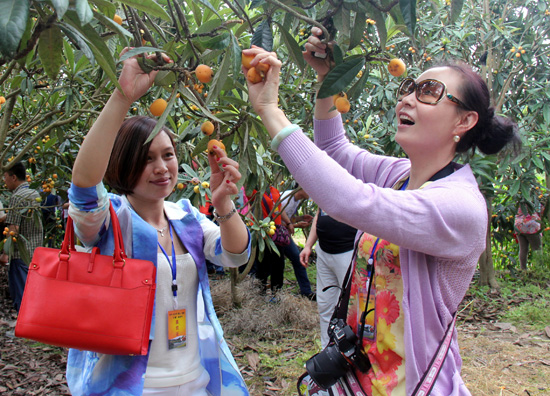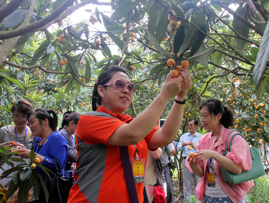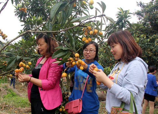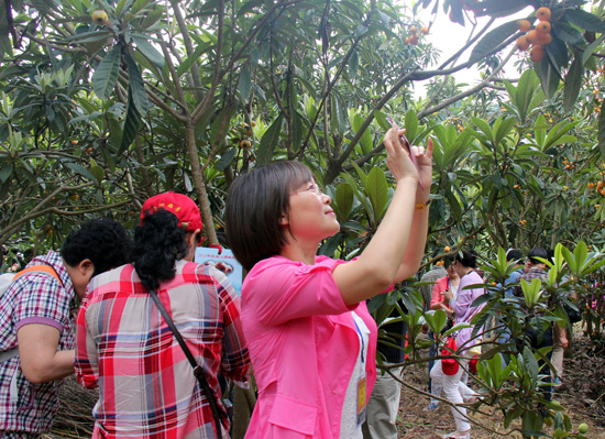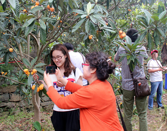 游客在枇杷园体验采摘游