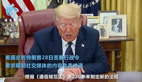 在推特称特朗普的推文存在「潜在的误导」後,特朗普当地时间28日签署一项行政令,要求限制社交媒体的内容免责待遇,这意味社交媒体可能因为其平台上发布的内容面临法律风险。而根据美国《通信规範法》,社交媒体平台不会因用户发布的内容被起诉。