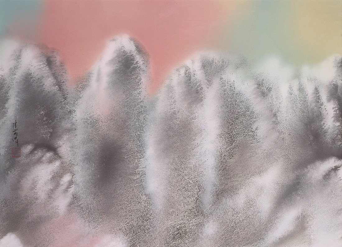 唐家偉作品《靈山9》,2010年。在畫作的右上方可見畫家的署名「山斗道人」。