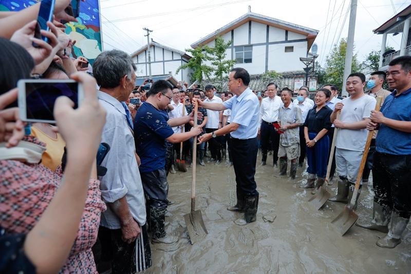 國務院總理李克強8月20日上午11時許飛抵重慶,一路輾轉來到洪水災情嚴重的潼南區雙壩村。李克強對當地幹部和隨行人員說,要落實好習近平總書記對防汛救災和災後重建工作的重要指示精神,確保人民群眾的生命財產安全。