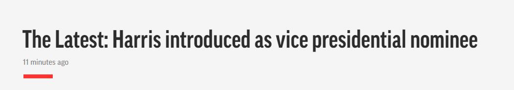 據美聯社剛剛消息,當地時間19日,美國民主党全國代表大會正式提名加州聯邦參議員賀錦麗(Kamala Devi Harris)為民主党副總統候選人。