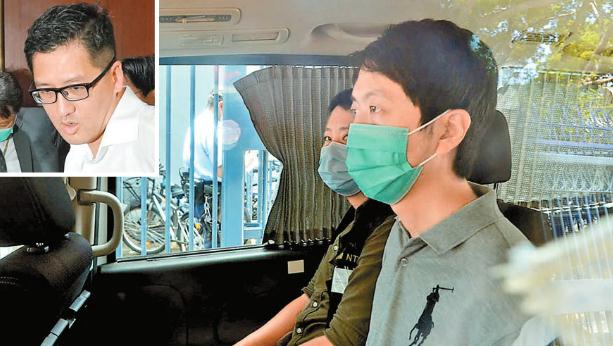 在消防趕往現場途中,1輛消防車在彩虹道轉入大成街時,在交界處與1輛的士相撞,的士車頭撞向消防車的右邊車尾,幸無人受傷,警員接報到場調查。(記者區天海)