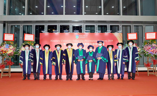 香港公開大學日前舉行2019年度榮譽大學院士頒授典禮,由副校監李業廣博士頒授榮譽院士學位予4位傑出人士,包括方言學學者張雙慶、漢學家朗宓榭、警務處副處長劉賜蕙及電腦安全專才伍尚匡。公大校董會主席黃奕鑑致辭讚揚4位榮譽院士於不同範疇的卓越成就,並對他們一直不遺餘力支持教育及公大的發展表示衷心讚賞。
