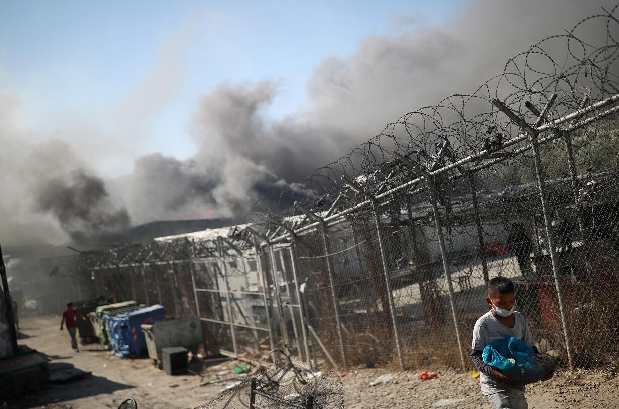 位於希臘萊斯沃斯島的莫里亞難民營周三淩晨發生多起火災(如上圖)。目前,火勢已基本得到控制。所有難民被迫轉移到安全地帶。有懷疑認為這是一起人為縱火案。