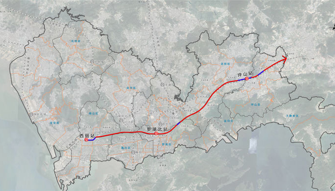 根據公告,深圳至深汕合作區鐵路(深汕高鐵)位於廣東省南部,起於深圳樞紐西麗站,經深圳市南山、龍華、羅湖、龍崗、坪山等區,惠州市至深汕合作區赤石鎮,引入廣汕鐵路赤石站(深汕高鐵引入後稱「深汕站」)。