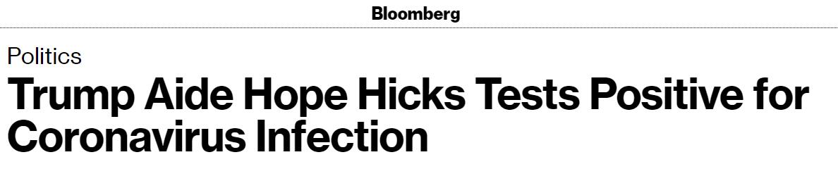 據彭博社援引知情人士消息,美國總統特朗普最親密的助手之一——霍普·希克斯(Hope Hicks)新冠病毒檢測結果呈陽性。