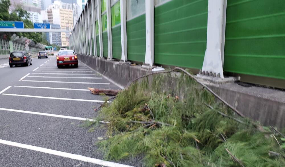 昨日中午12時許,西環干諾道西131號有大廈外牆一幅約30米乘8米的巨型帆布廣告,在強風下被吹翻,部分掩蓋相鄰的大廈,警方及消防員接報到場戒備,並由消防員登上天台及架起雲梯將海報拆除,有驚無險。