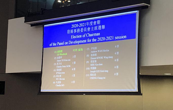 立法會發展事務委員會選出主席,由盧偉國勝出。此前在完成投票後,反對派議員許智峯從投票箱拿走3張選票,主持會議的謝偉銓決定重新投票。而在投票前,反對派議員不斷在席叫囂,許智峯及黃碧雲更走到台前搶咪,稱抗議謝偉銓主持不公。