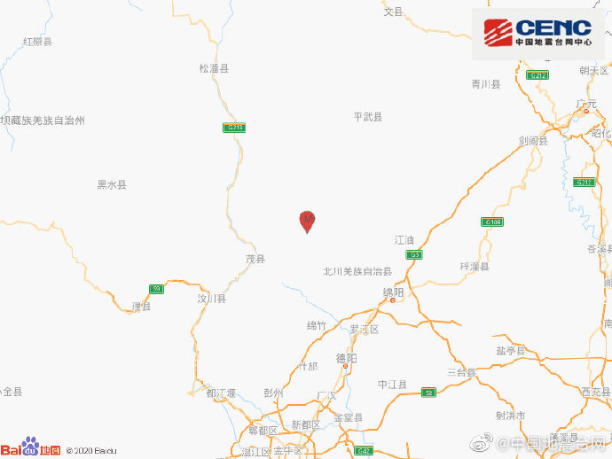 10月23日01時12分在四川綿陽市北川縣(北緯31.84度,東經104.17度)發生3.0級地震,震源深度18千米。