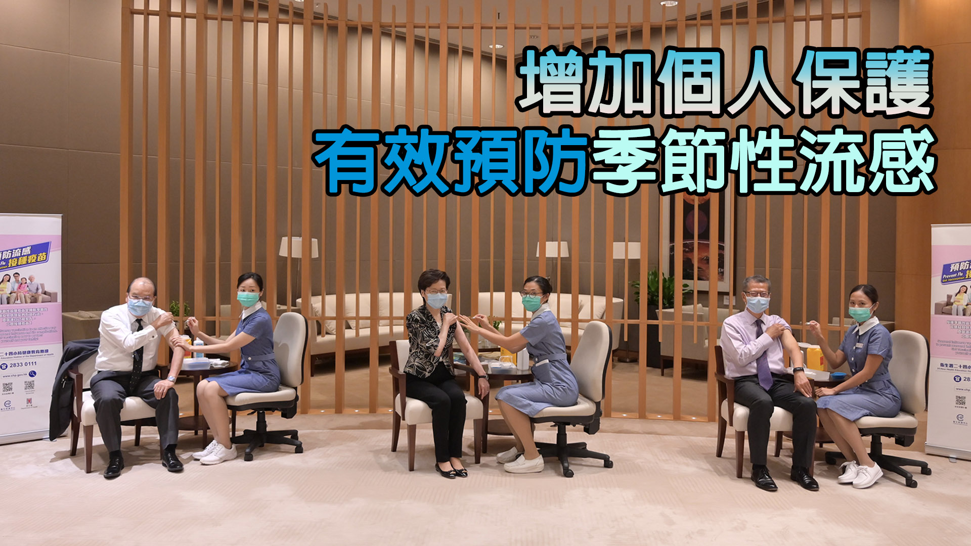 林鄭月娥28日率領多名司局長和副局長接種季節性流感疫苗,呼籲市民及早接種流感疫苗,並保持良好個人和環境衛生,作好準備應對冬季流感高峰期。她表示,新冠肺炎於全球大流行,加上冬季流感高峰期將至,同時患上流感與新冠肺炎人士可能會出現更嚴重病情,接種流感疫苗是有效預防季節性流感及其併發症的方法之一,亦可減低因流感而入院留醫的機會和死亡風險。她特別呼籲,流感高危群組盡早透過「政府防疫注射計劃」,在公營醫療系統接種免費季節性流感疫苗,以增加個人保護。