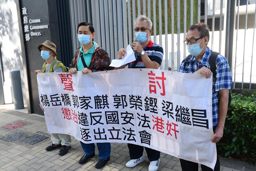 其他到場團體包括:香港青年關注組、監察DQ議員大聯盟、市民反拉布關注組,他們均要求立法會主席行使發揮議會權力,果斷剪布,以及嚴懲拉布的反對派議員,撒消楊岳橋、郭榮鏗、梁繼昌及郭家麒4人議員資格。(記者馮偉強 崔俊良攝)