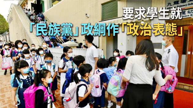 報道稱,同一部分詳列「民族黨」宗旨與部分政綱,要求學生認同便舉手示意作「政治表態」,其中包括「禁止普通話作為教學教言」、「日常拒絕使用普通話」等政綱。資深校長質疑,內容刻意放大文化差異,煽動學生歧視內地人,更否定學校課程設計。資深校長表示,綜觀整份教案內容,他認為涉事教師違反專業操守是「證據確鑿」。