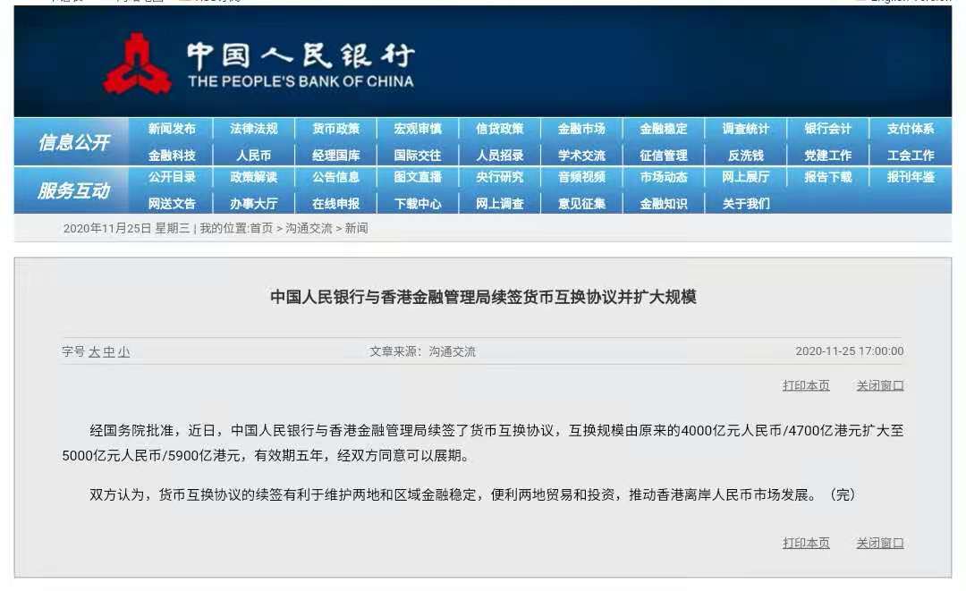 經國務院批准,近日,中國人民銀行與香港金融管理局續簽了貨幣互換協定,互換規模由原來的4000億元(人民幣,下同)擴大至5000億元,有效期5年,經雙方同意可以展期。