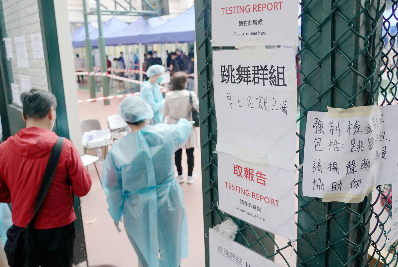 跳舞群組再增59 宗確診,累計達311 宗,港府早前已特設油麻地社區檢測中心專為跳舞群組檢測。中新社