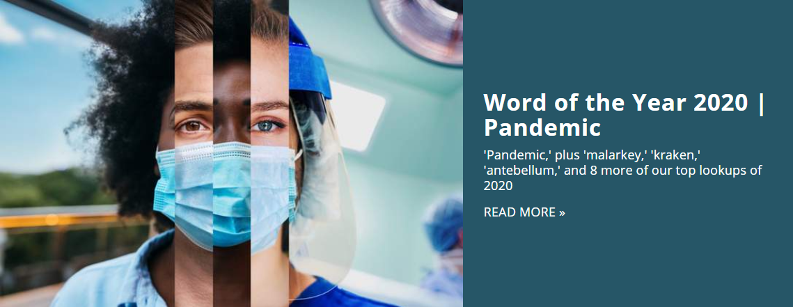 繼牛津詞典和科林斯詞典後,據多家美媒報道,當地時間30日,美國韋氏詞典(Merriam-Webster)發布了2020年度詞彙「大流行(pandemic)」。