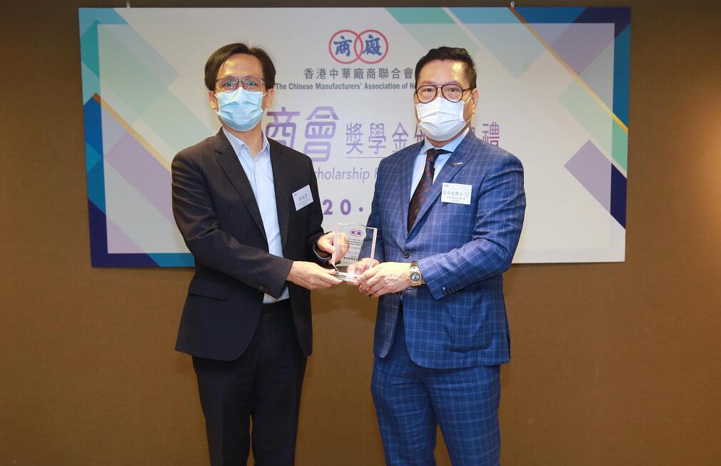 香港中華廠商聯合會今日(8日)舉行2020年廠商會獎學金頒獎典禮,廠商會會長吳宏斌頒發獎學金予得獎學生代表,以嘉許同學在上一年度的表現。