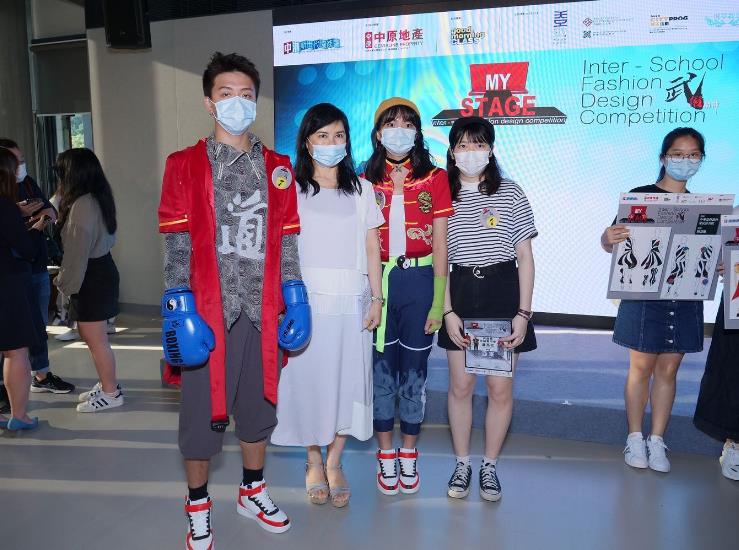 第二屆「全港中學生時裝設計比賽」以「武術」為主題,李慧芬(左二)與身穿武術元素時裝的參賽者合照。