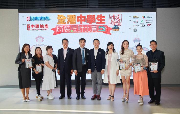 首屆「全港中學生時裝設計比賽」以「清朝攻略」為主題,作為主辦人之一的李慧芬(右四)頒獎給得獎者。