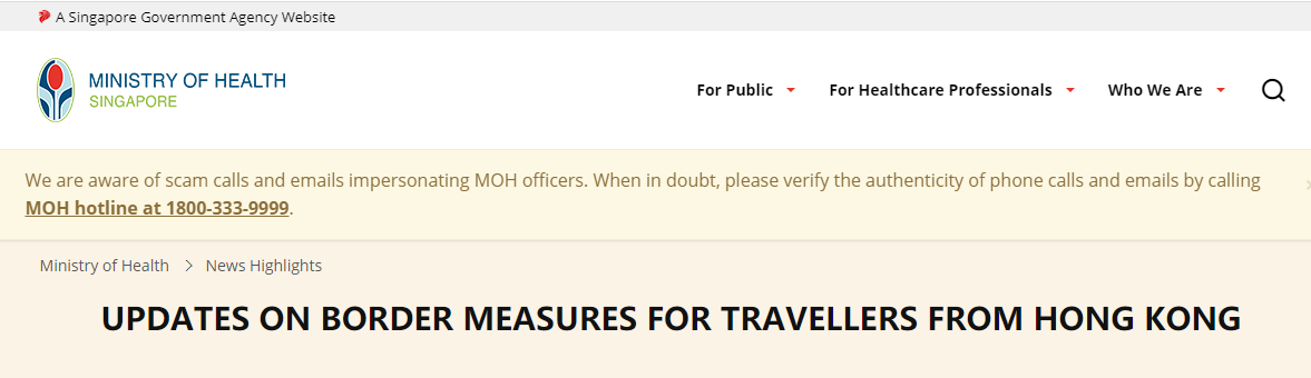 據新加坡衛生部11日晚消息,鑑於香港疫情惡化,將會收緊邊境措施,由下星期一(12月14日)起,所有從香港入境或過去十四日曾到香港人士,入境新加坡後需要在指定設施居家檢疫十四日,多於目前的七日。另外,由下星期六(12月19日)起,有關入境人士要在出發前的七十二小時內接受病毒檢測,以及出示結果。