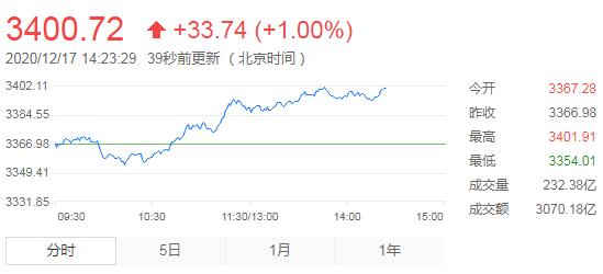今日午后,A股三大指數持續走強,滬指漲超1%,重回3400點關口。盤面上,銀行等權重金融股紛紛走強,带動大盤向好。