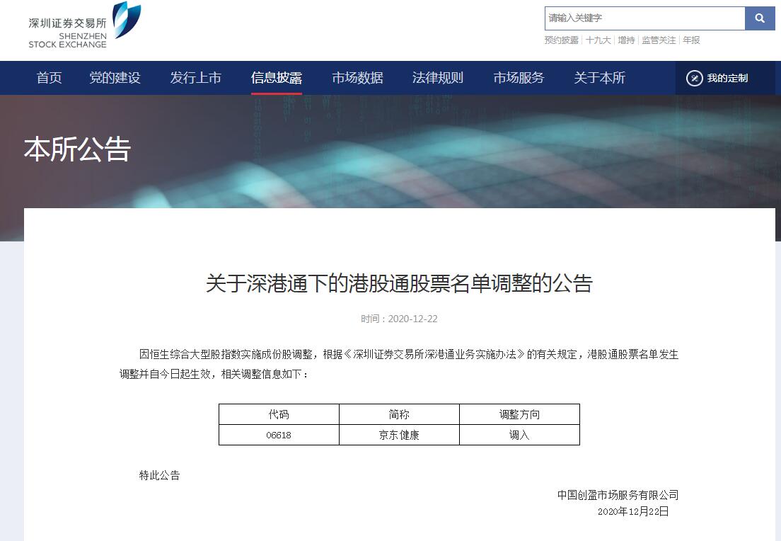 據深交所消息,12月22日,因恒生綜合大型股指數實施成份股調整,根據《深圳證券交易所深港通業務實施辦法》的有關規定,港股通股票名單發生調整並自今日起生效。