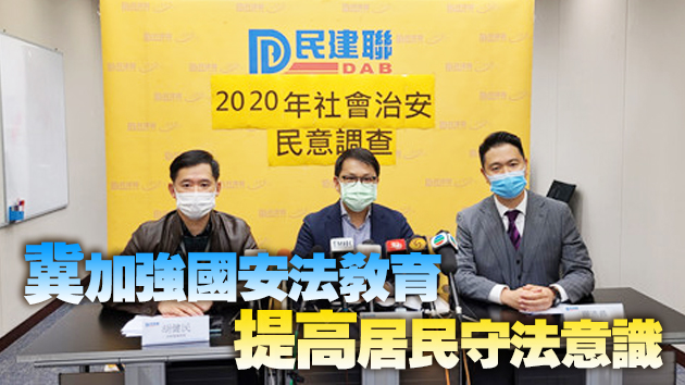 民建聯認為2020年治安情況不好是由於反修例激進示威者耗用了大量警力,令警方攤薄人手處理其他警務工作,導致犯罪率大升;調查同時發現7成1受訪者認為落實香港國家安全法後,有助大幅減少本地暴力事件,令社會恢復秩序;但市民仍然覺得2020年整體治安不好,民建聯相信是由於市民對「法庭輕判暴力案件」的印象所導致,並舉出法官讚賞擲汽油彈的少年「優秀」及馬鞍山縱火案被告被判無罪的事件,指出上述裁判都會令市民認為公義未能在法庭上彰顯;民建聯也透露調查發現有7成2受訪者認同加強國安法教育,以提高居民的國家安全意識和守法意識,而民建聯認為加強國安法教育有廣泛的社會共識,故它們促請政府必須加強國安教育,以及應全力支持警務處國家安全處的執法工作,包括擴大處理國安事宜的警隊編制及完善其裝備。