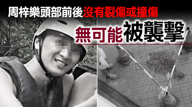 江金富說,周梓樂跌落的距離約為1.3米,高度為4.3米,主要傷勢在頭部、盆骨及胸口;加上他的指甲沒有驗出其他人的DNA,未必有抓過其他人,故認為他意外墮下的機會機大。江醫生推斷,周梓樂是頭部先落地,繼而胸口、腰部及盆骨落地,惟相隔時間不足一秒。