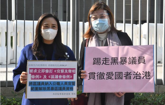 團體促請特區政府立即向立法會遞交,並加快審理關於修訂《宜誓及聲明條例》及《區議會條例》的草案,明確規定區議員必須真誠宣誓擁護基本法及效忠特區政府的安排,即時解除未能符合真誠宣誓的現屆區議員資格,並追究其刑事責任,以符合國安法的相關規定。