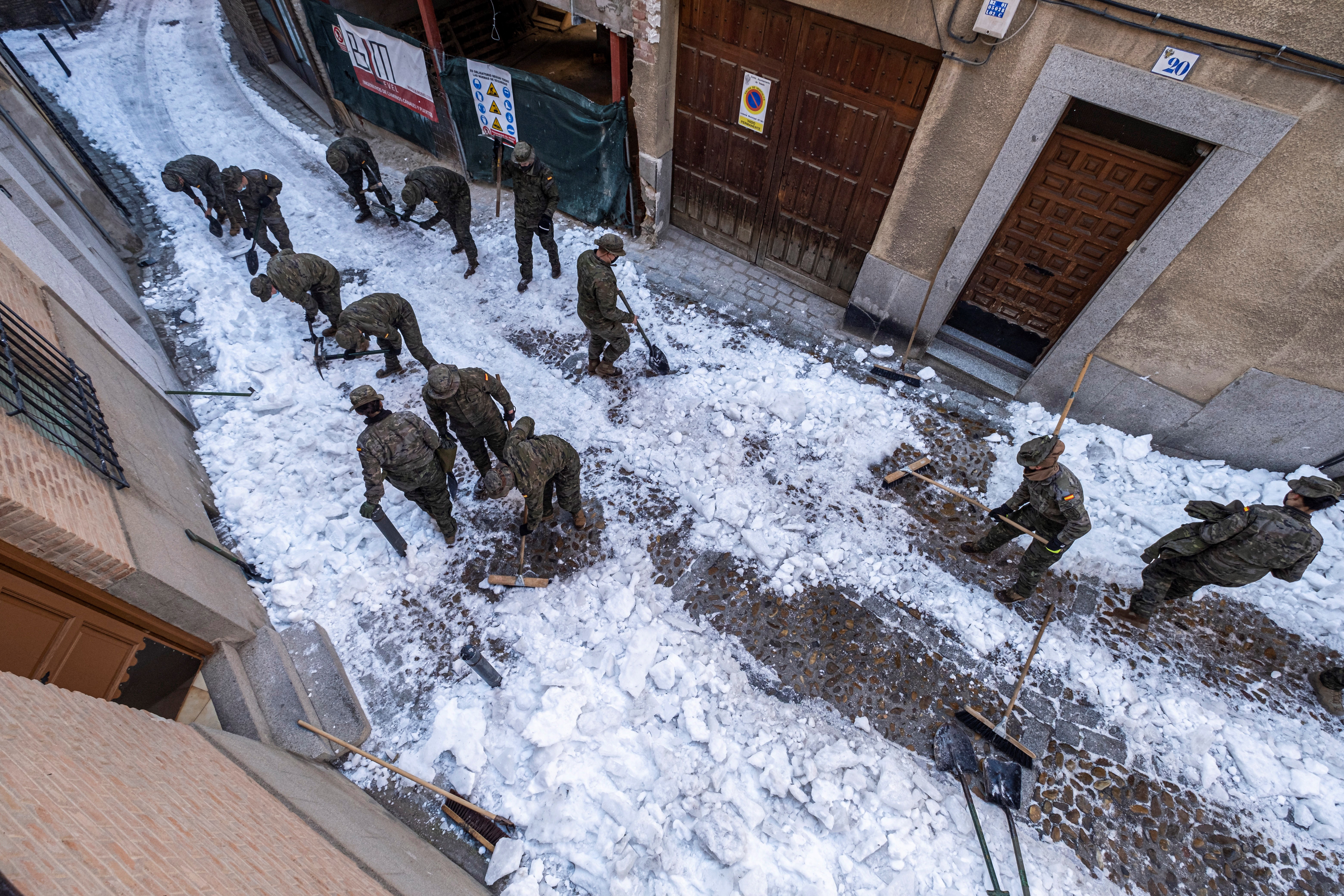 1月11日,西班牙托萊多,軍人在清除積雪。