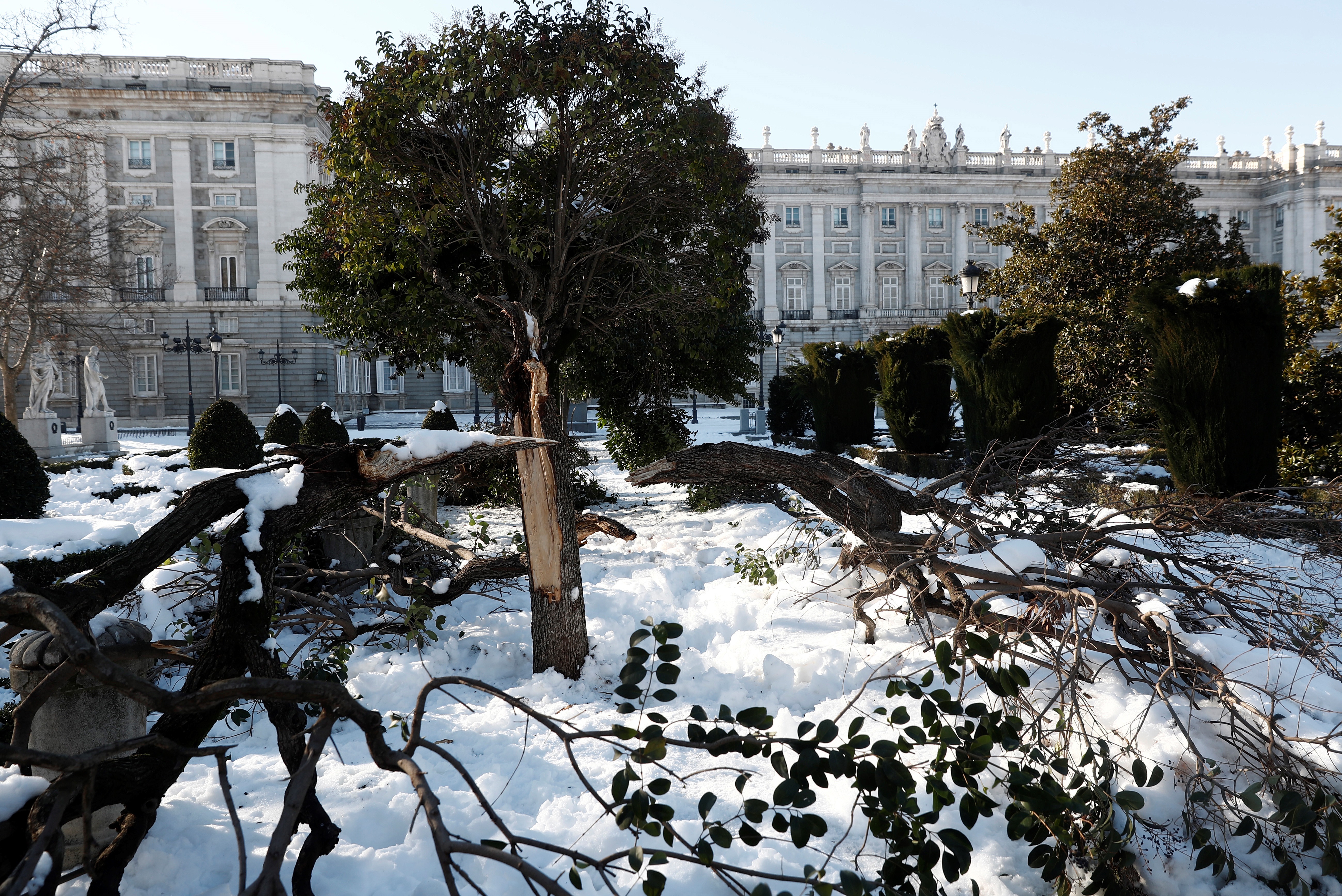 1月11日,西班牙馬德里,暴雪後倒下的樹木。