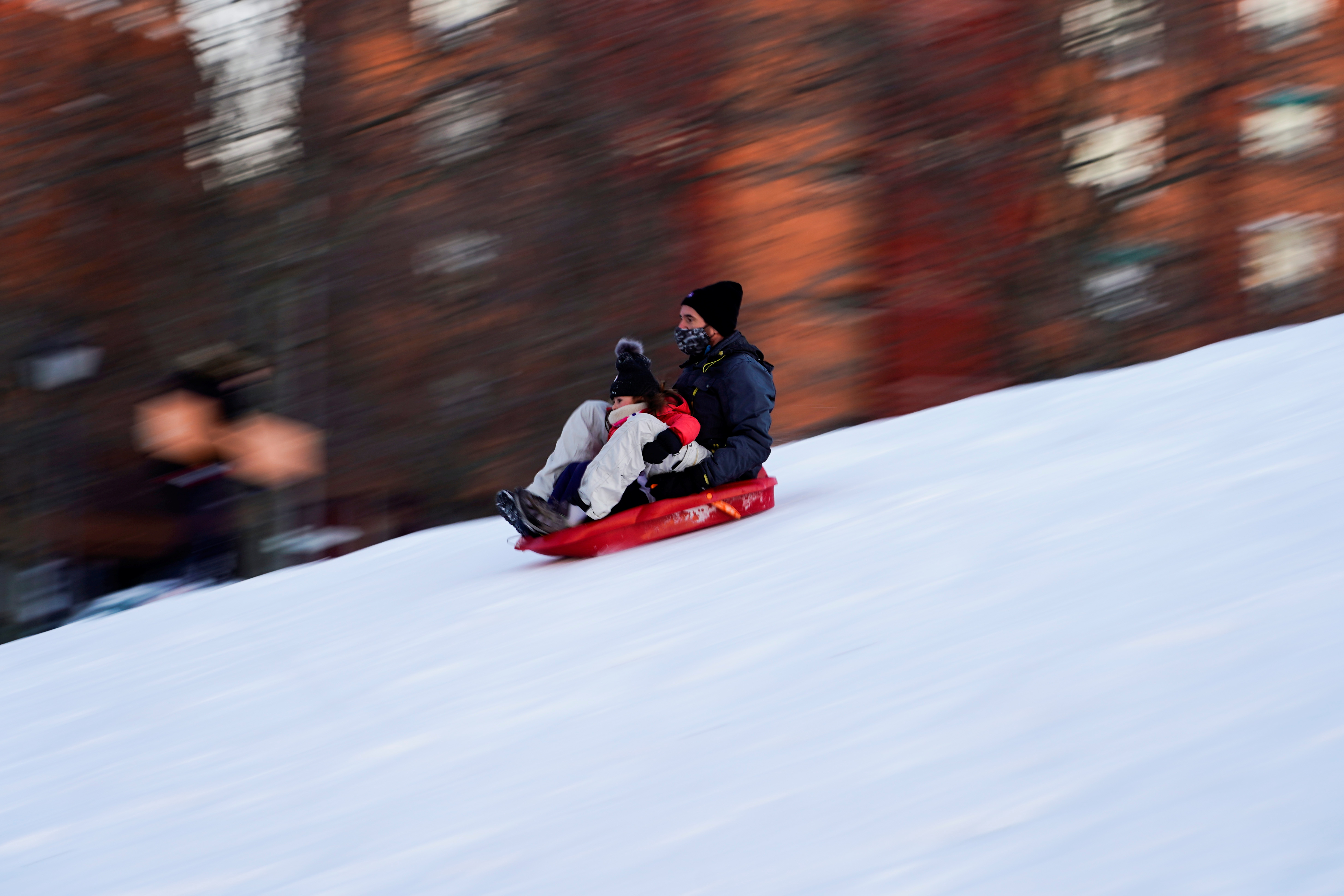 1月11日,馬德里大雪過後,人們在冰雪覆蓋的小山上滑雪。路透社