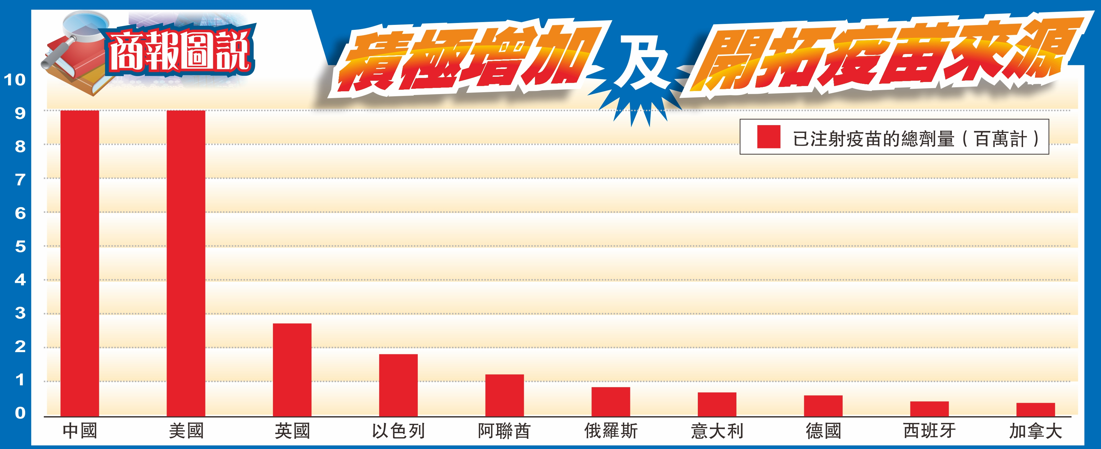 雖然,輝瑞BioNTech最近調升今年疫苗產量目標50%至20億劑,Moderna也指年內產量可最少增20%至6億劑,AstraZeneca亦擬將每周產量提高到200萬劑(即一年生產1億劑左右),但顯易而見,對比全球需求還是杯水車薪,甚至不夠滿足西方需要。世衛專家昨慨嘆,2021年群體免疫達標恐怕無望。