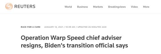 據多家外媒消息,按照拜登團隊的要求,美國政府疫苗計劃「曲速行動(Operation Warp Speed)」首席顧問蒙塞夫·斯勞伊(Moncef Slaoui)已經遞交辭呈。