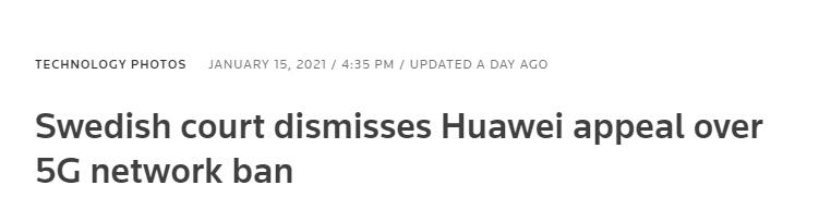 路透社15日報道,關於瑞典排除華為參與當地5G網絡建設一案,最高行政法院14日駁回華為的上訴。華為未立即回復置評請求。