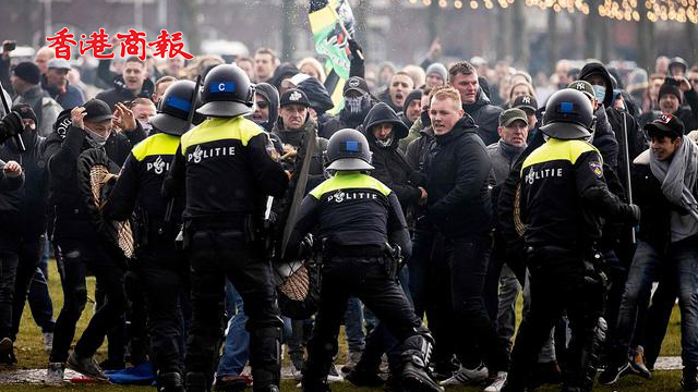 有片丨荷蘭上千名抗議者走上街頭拒絕疫情封鎖 警察用高壓水槍驅散
