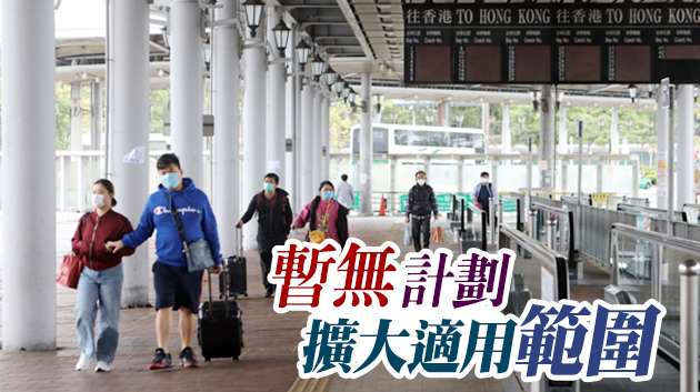 港府续指,綜合目前整體情況,現時並非擴大計劃的適當時間,當局會繼續密切留意粵港澳三地疫情發展及其他相關因素,如稍後計劃的適用範圍有任何調整,會適時作出公布。