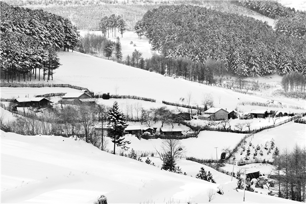 條藤徑綠,萬點雪峰晴,冬天的松嶺雪村如若萬點雪峰在陽光下閃爍,村民們日出勞作,日落而息,踩出了一條條鄉間雪路,這便是踏入松嶺雪村的小徑。