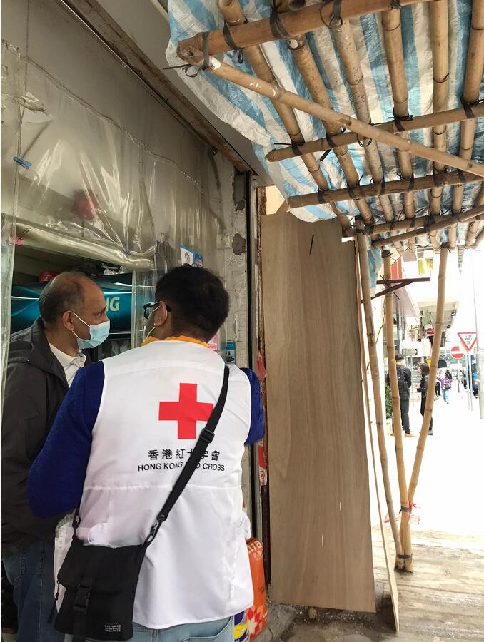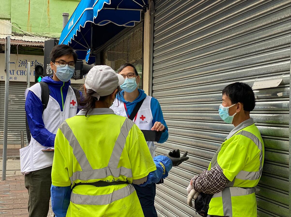 香港紅十字會在24及25日派出職員及義工到油麻地及佐敦一帶,為受影響人士提供即時心理支援服務、健康及防疫資訊、派發抗疫用品及相關小冊子,並了解弱勢社群的需要。