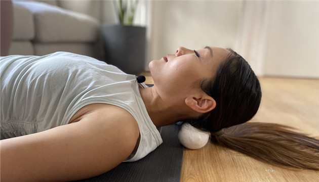 用網球按壓是瑜伽導師Jyothi紓緩痠痛最常用的方法,使用網球可以按壓頸部,中醫指出頸後兩個穴位名為風池穴,按壓風池穴可以紓緩很多身體毛病如偏頭痛、肩膊僵硬、眼脹等。