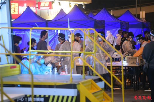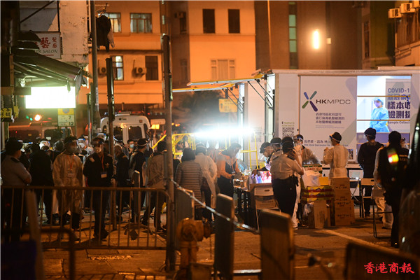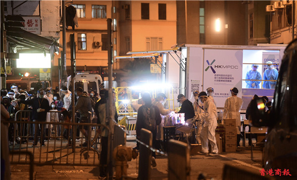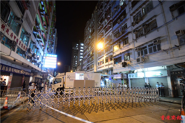 政府今晚20:06宣布引用《預防及控制疾病(對若干人士強制檢測)規例》(第599J章),作出限制與檢測宣告,自下午8時起限制在土瓜灣指明「受限區域」(即土瓜灣馬坑涌道4-6號華發大廈)內的人士須留在其處所並接受強制檢測。