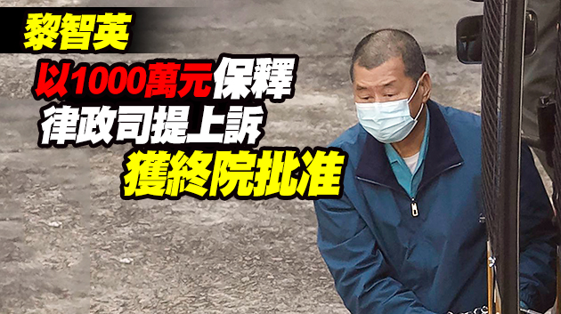 黎智英去年12月獲高等法院法官李運騰批准以1000萬元保釋,期間需遵守不得離開住所等規定。律政司不服提出上訴,終院去年12月31日批出上訴許可,黎智英再度還柙。