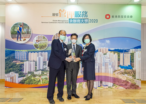 由香港房屋委員會主辦的「屋邨管理服務承辦商大獎2020」頒獎禮今日(10日)於何文田房委會總部舉行,共頒發51個獎項,嘉許過去一年在管理房委會轄下物業有傑出表現的服務承辦商、物業服務經理及前線員工。