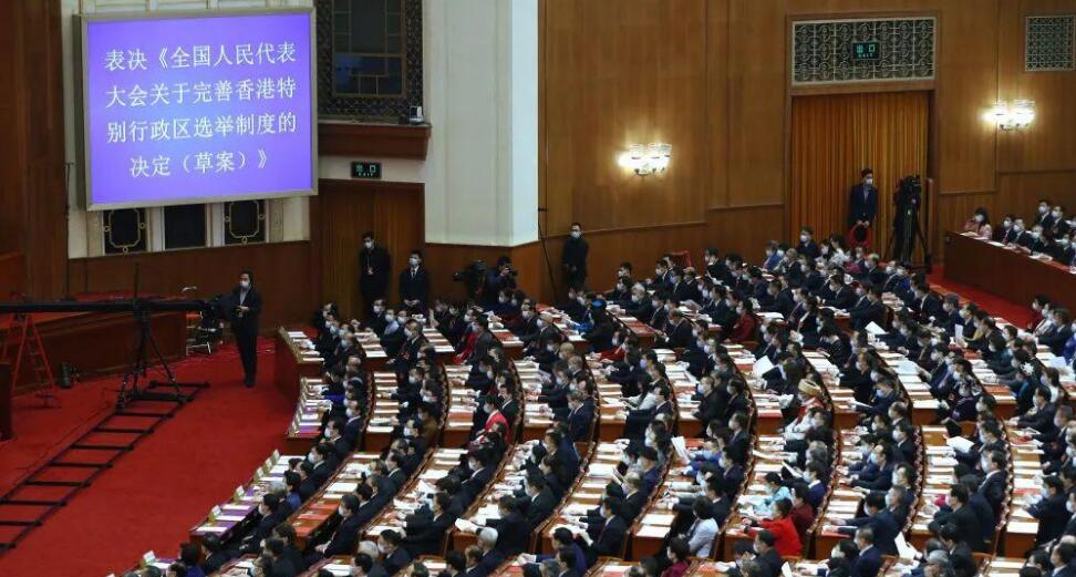 3月11日,十三屆全國人大四次會議以高票表決通過《全國人民代表大會關於完善香港特別行政區選舉制度的決定》,就完善香港特別行政區選舉制度作出新的憲制性制度安排。這是繼制定實施香港國安法後,中央完善香港法律和政治體制的又一重大舉措,對確保實現以愛國者為主體的「港人治港」,有力保障香港「一國兩制」實踐行穩致遠,具有十分重大而深遠的意義。
