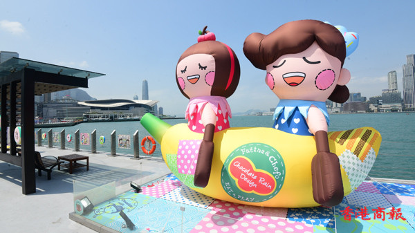 灣仔海濱近月幾經翻新已成不少市民、小朋友的打卡熱點,已印上多幅插畫的灣仔海濱長廊通道,近日再增添多位新成員,原來是繼續由本地卡通插畫Chocolate Rain的兩大吹氣巨型公仔加入,佇立在海濱一旁,靜靜欣賞維港海天一色。