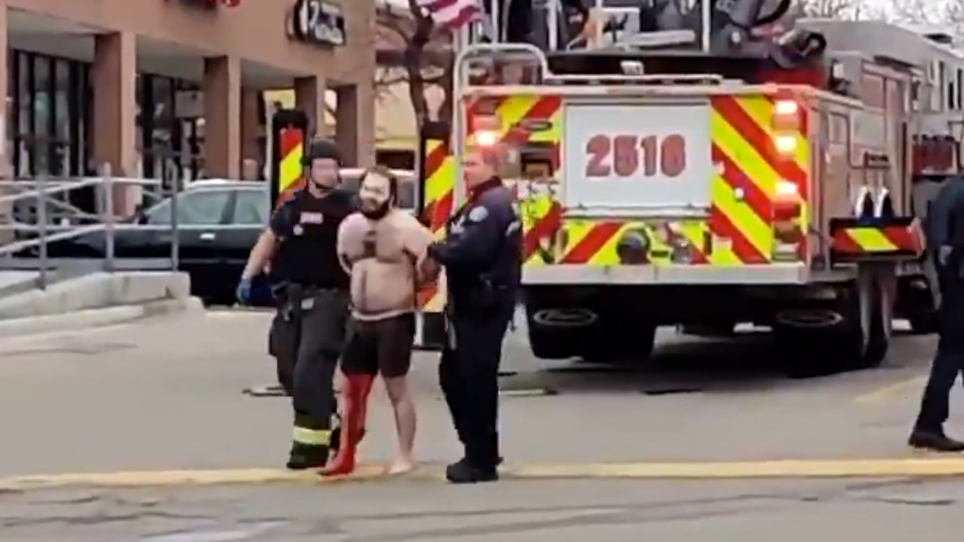博爾德市警局高階警官山口表示,嫌犯受傷後即被逮捕。媒體拍攝到一名打赤膊、身材肥碩且禿頭的白人男子被警方上銬帶走,腿部流血。據當地媒體報道,嫌犯持一把AR-15突擊步槍作案,這種軍用規格槍械殺傷力很強,但在美國很容易合法購買。