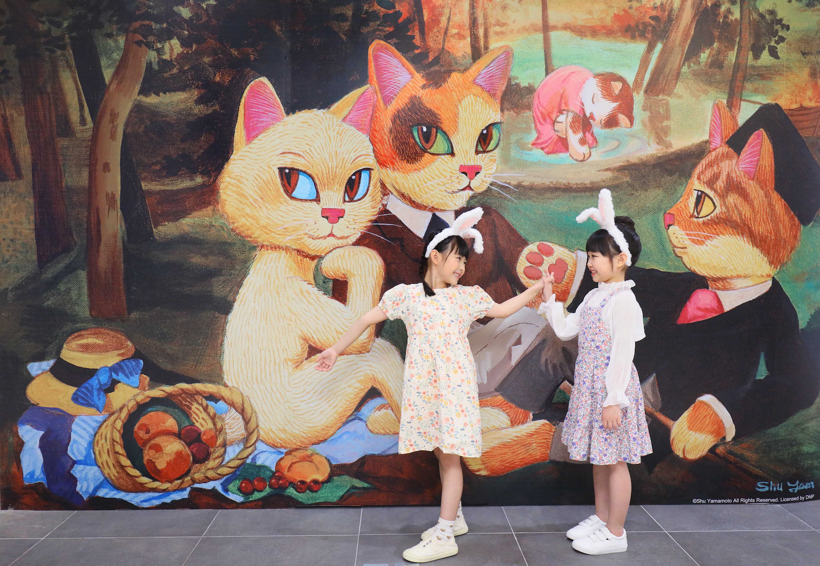 全新貓壁畫《貓咪們的野餐》(上)及《貓咪的船上派對》(下)。