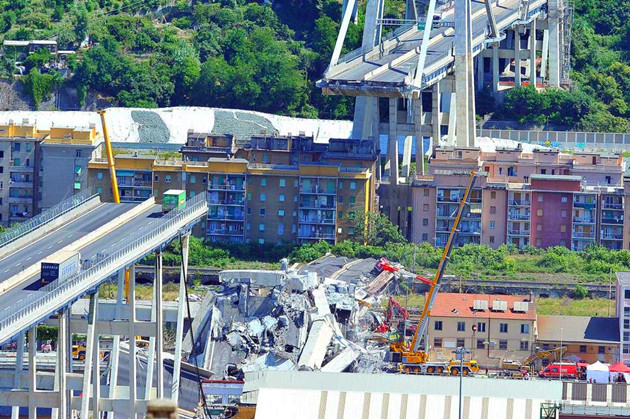 2018年8月14日,意大利熱那亞莫蘭迪公路橋突然發生垮塌,數十輛車隨着垮塌的橋段墜下,砸向橋下的河流、鐵軌與建築物。意大利當局曾派出近千人展開搜救行動,最終確定這起事故造成43人死亡。事件曾造成大橋周圍600多名居民被迫撤離,意大利西北部地區交通網受到嚴重影響。