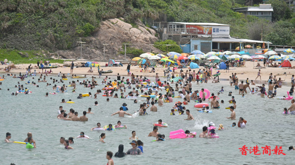 今天是一年一度的端陽節,以往香港多個地區都有龍舟競賽,因為疫情而取消了,不少市民到海灘游「龍舟水」。今天天公造美,氣溫不算太高,又沒有下雨,在港島的石澳泳灘有的一家大小、有的結伴成群,游泳、嬉水、滑水、堆沙,各式其式,不亦樂乎。(馮瀚文攝)
