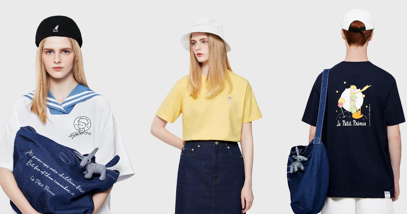 該系列以《Le Petit Prince小王子》內的經典角色及圖案——如小王子頭像、狐狸、蛇吞象及玫瑰等作印花,配上小王子的代表色寶藍、白及橙棕色,以細膩的畫風為你的穿搭帶來一絲溫暖治癒。